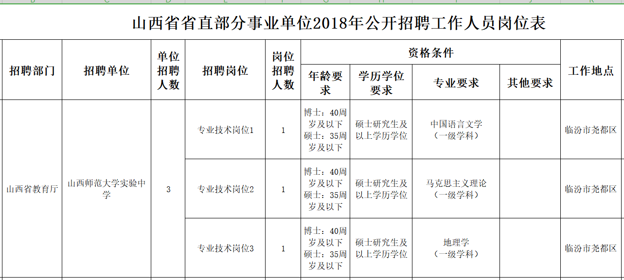 根据工作需要,山西省教育厅(局)所属事业单位山西师范大学实验中学2018年面向社会公开招聘工作人员,现就有关事项公告如下: