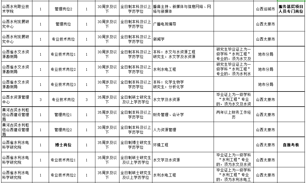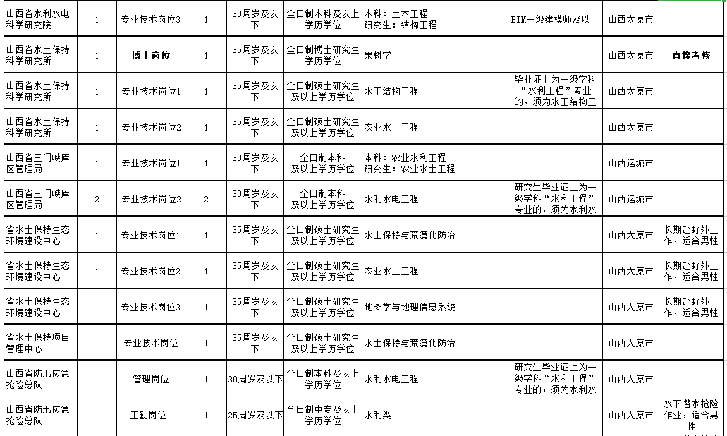 应聘山西省水利水电科学研究院和山西省水土保持科学研究所博士岗位的考生,免笔试,采取直接考核的方式。