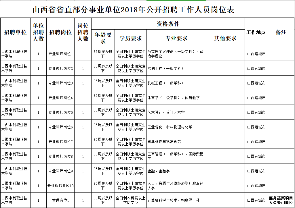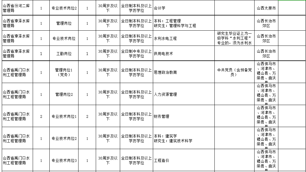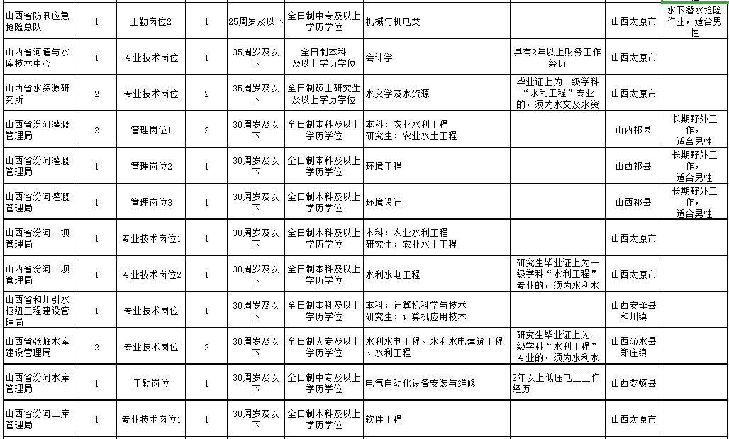根据工作需要,山西省水利厅所属部分事业单位面向社会公开招聘工作人员77名,现将有关事项公告如下: