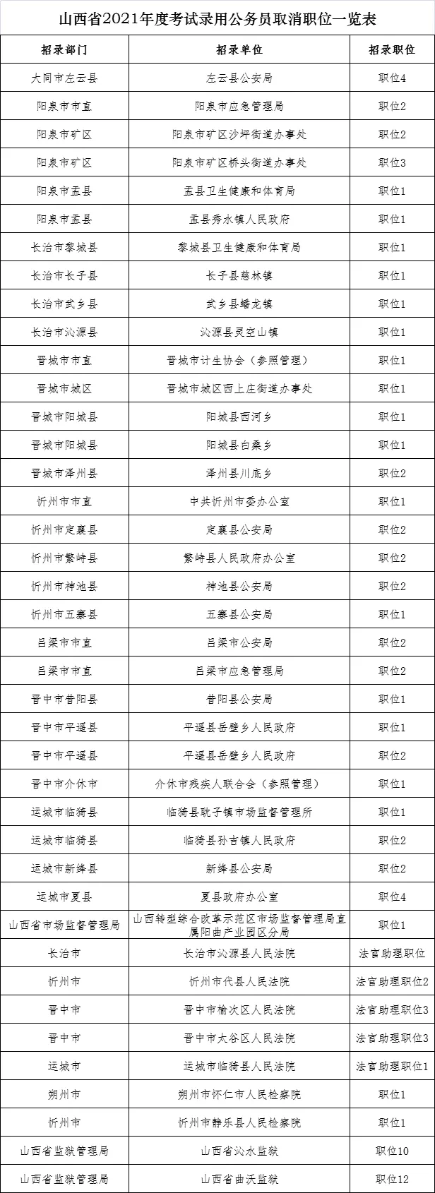 附件:山西省2021年度考试录用公务员取消职位一览表.xls