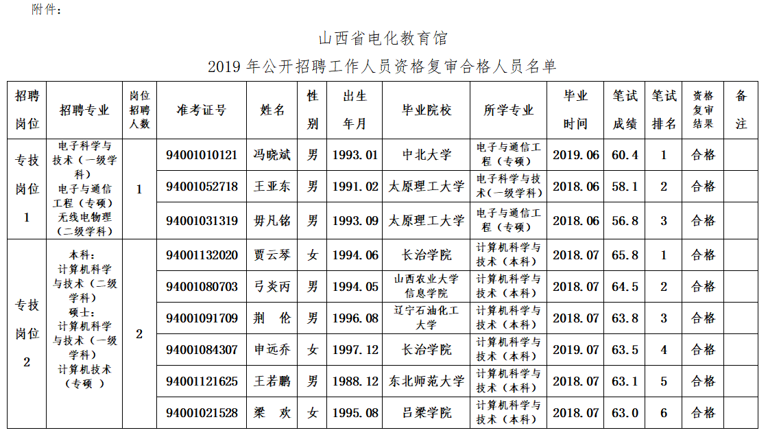 附件:山西省电化教育馆2019年公开招聘工作人员资格复审合格人员名单