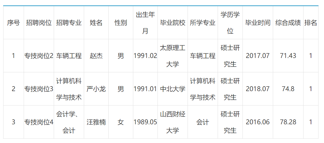 根据《山西省省直部分事业单位2019年公开招聘工作人员公告》和《山西省工业管理学校2019年公开招聘工作人员方案》等相关规定,经过初试、面试、体检、考察等程序,确定严小龙等3人为拟聘用人员,现将2019年度公开招聘拟聘用人员予以公示。