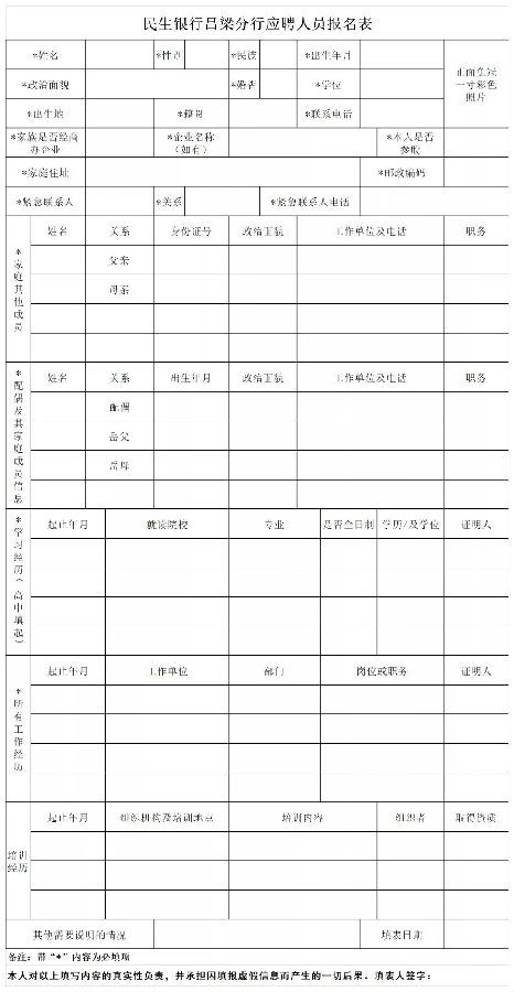 (一)应聘者可在招聘公告附件下载并填写《民生银行吕梁分行应聘人员报名表》,并同简历同时发送至zhaoqinqin@cmbc.com.cn。
