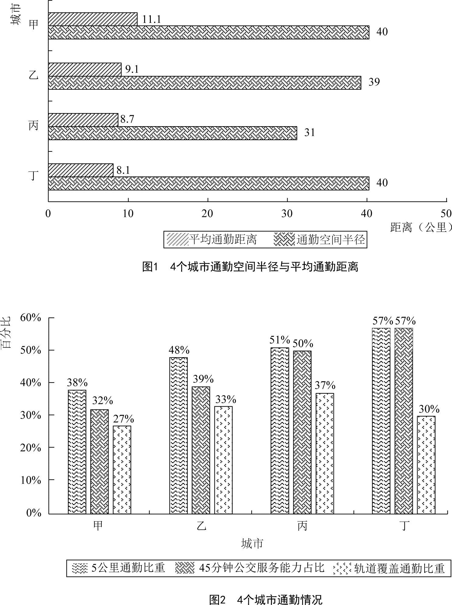 D.丁市公共交通服务能力最强并且轨道覆盖通勤最好