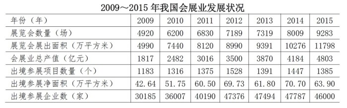 D.2013~2015年,我国平均每天举办的展览会数量超过20场