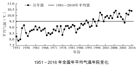 2016年,我国平均气温10.36℃,较常年平均气温偏高0.81℃,为1951年以来第三高,仅次于2015年(10.49℃)和2007年(10.45℃)。2016年四季气温均偏高,其中夏季气温为历史最高;除1月偏低、11月接近常年同期外,其余各月均偏高,其中12月偏高2.6℃,为历史同期最高。全国31个省(区、市)中,仅黑龙江平均气温较常年偏低0.2℃,其他省(区、市)气温均偏高,其中青海、甘肃、河南和贵州4省均为1951年以来的历史最高。