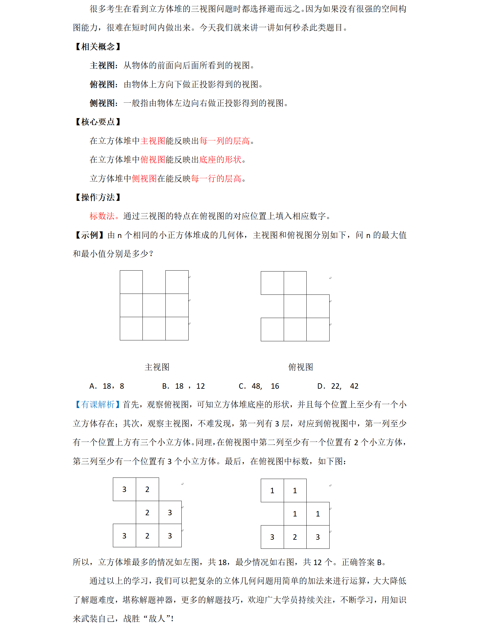 【数学运算】标数法秒解立方体堆三视图问题