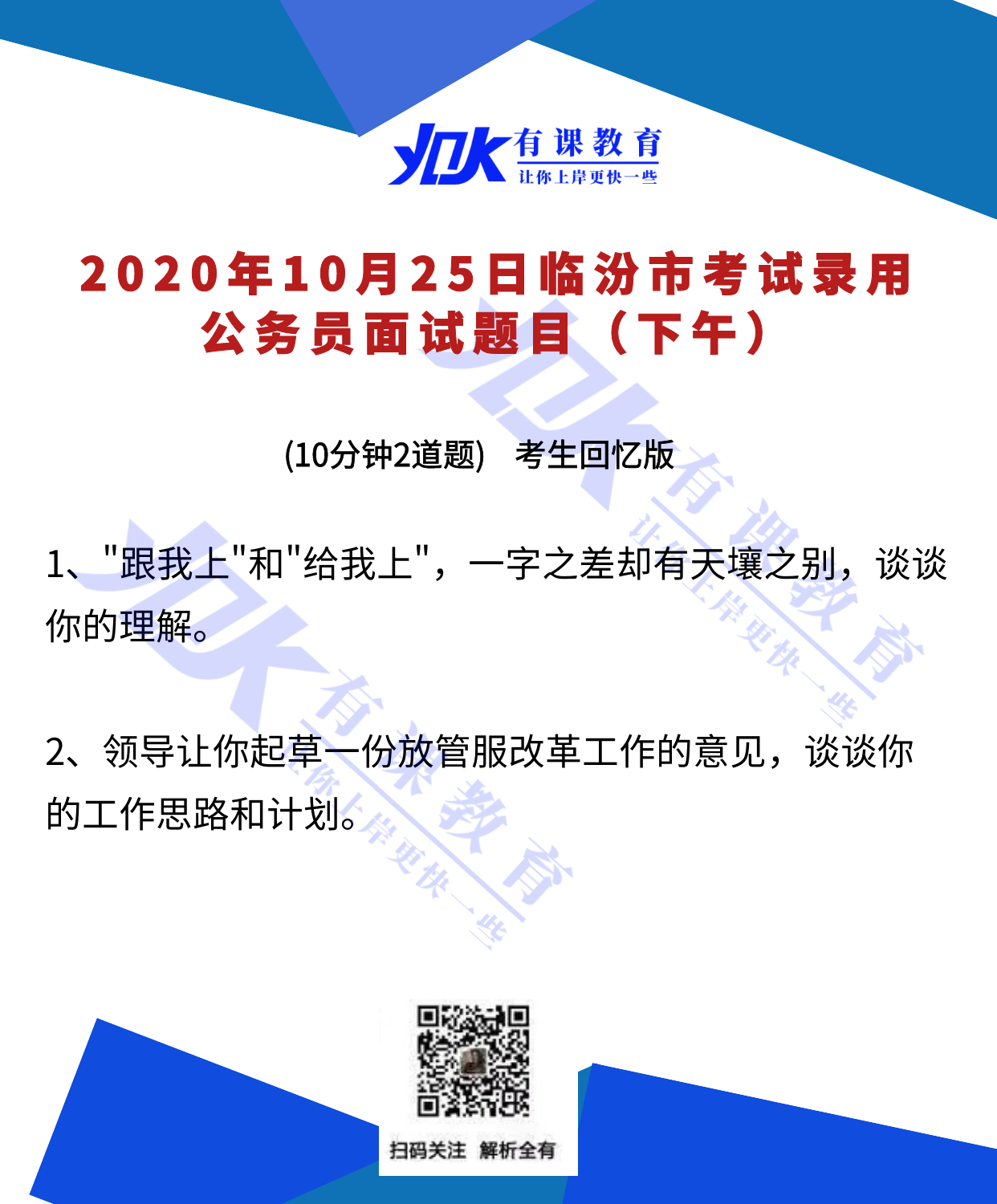 2020年10月25日临汾考试录用公务员面试真题(上午场)