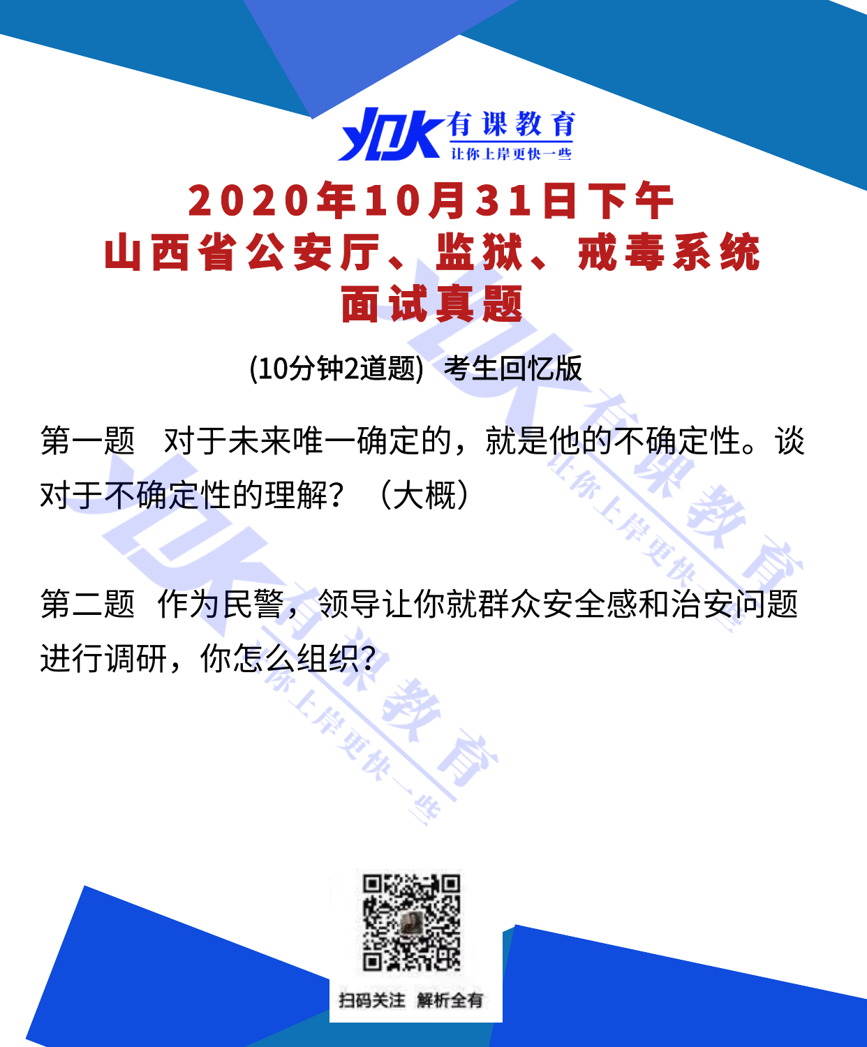 2020年10月31日下午山西省公安厅、监狱、戒毒系统面试真题