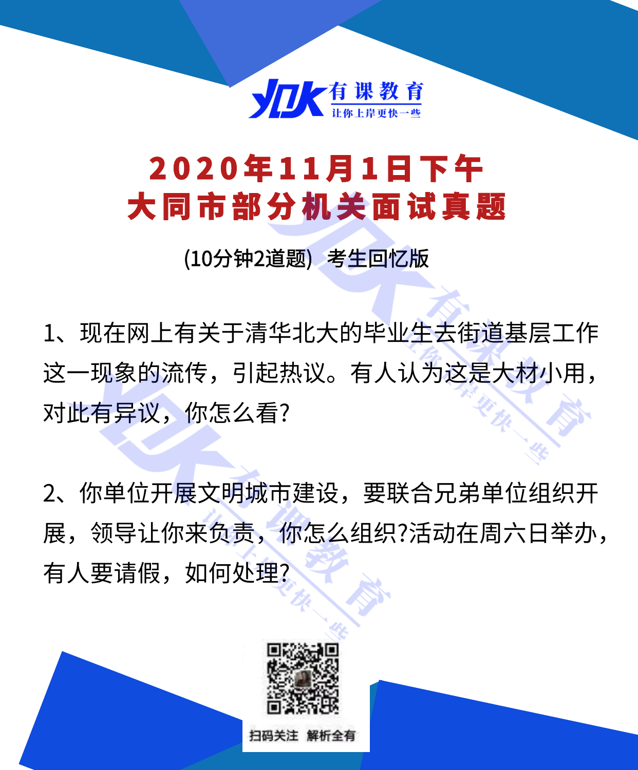 2020年11月1日下午大同市部分机关面试真题