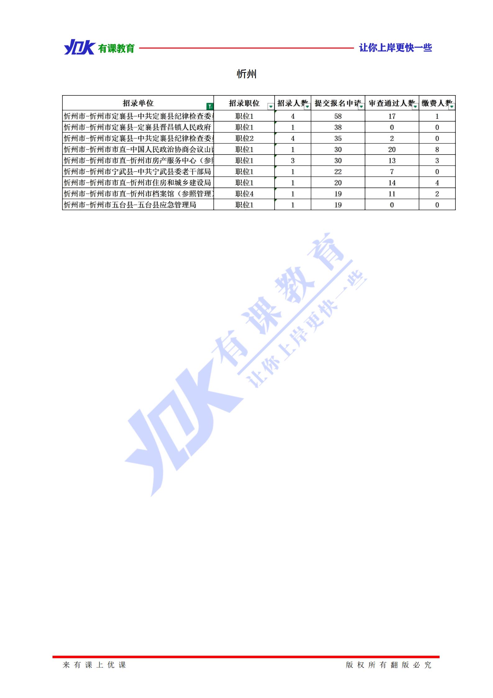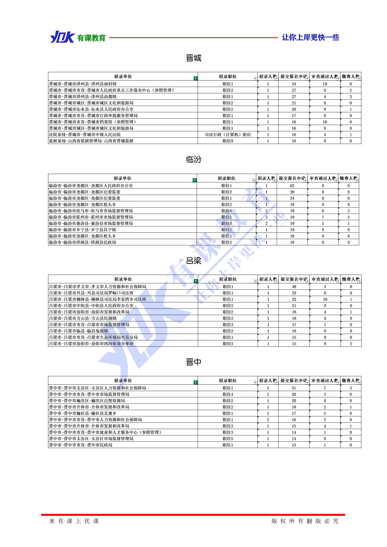 2020山西选调生报名人数统计