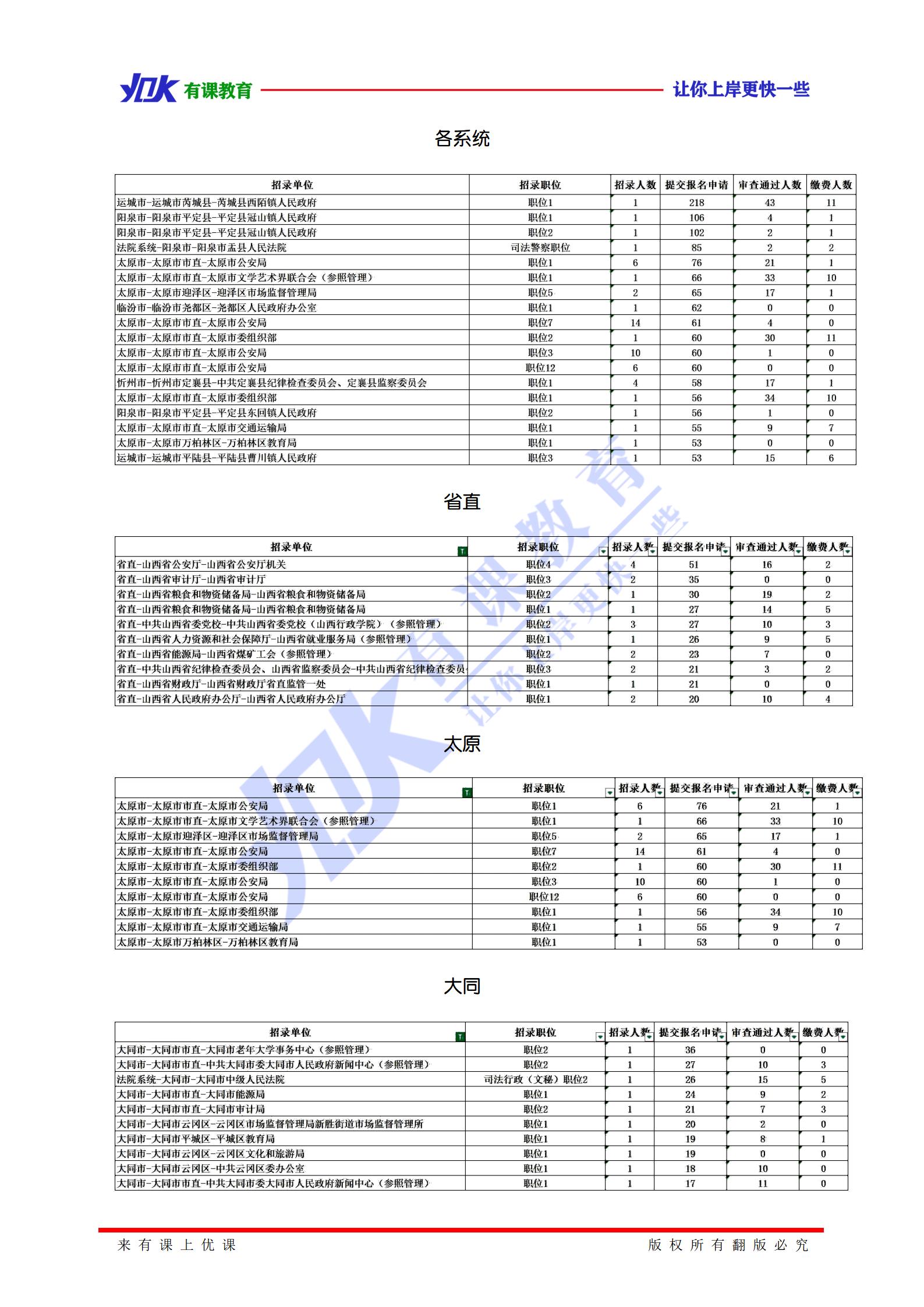 2021山西省直事业单位笔试报名情况(截至4月22日8:30)