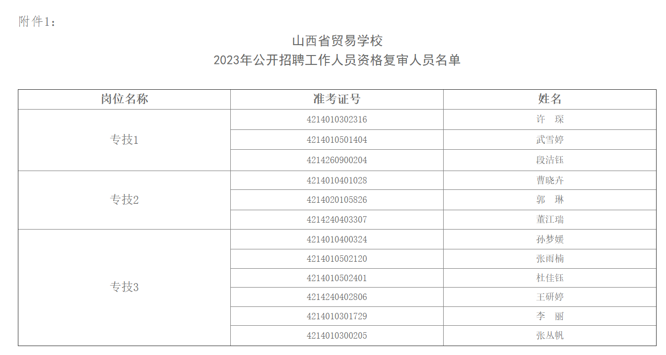 1.山西省贸易学校2023年公开招聘工作人员资格复审人员名单