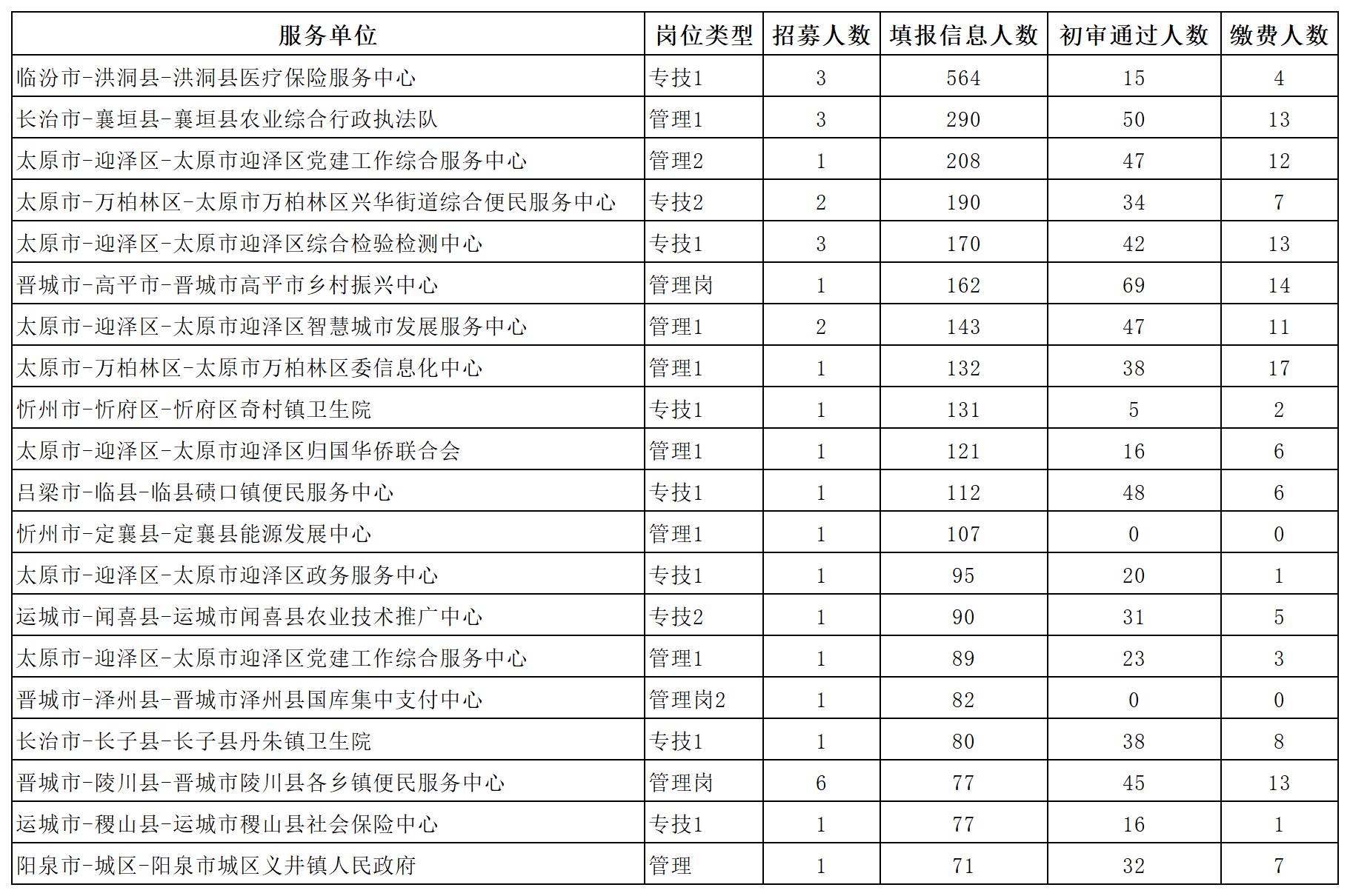 2021山西省直事业单位笔试报名情况(截至4月22日8:30)
