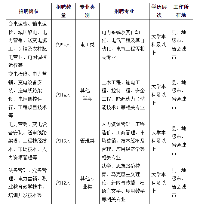 根据国家电网有限公司统一安排,国网山西省电力有限公司2026年第二批高校毕业生招聘主要面向电工类、其他工学类、管理类、其他专业类大学本科及以上学历应届毕业生。